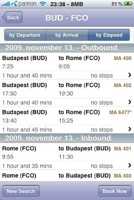 Maga az alkalmazás könnyen kezelhető, be kell állítani az induló és érkező repülőteret, ezután láthatjuk a járatokat. Ha ragaszkodunk valamelyik légitársasághoz, akkor azt is kiválaszthatjuk. Amennyiben egy adott társaság nem repül a megadott városba, akkor mutatja az átszállást is (mint pl. a Malév Londonba).