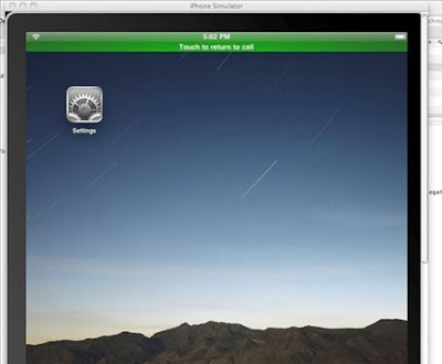 Übergizmo bemutatott egy képernyőképet, mely az iPad Emulatoron készült. A kép felső részén látható a ‘Touch to return to call’ felirat, mely az iPhone-on jön elő, ha hívás közben egy másik alkalmazás kerül elindításra. Nem hiszem, hogy az iPad képes lesz hívásokat kezelni, a fotózáshoz hasonlóan egyszerűen benne maradhatott az SDK-ban ez a programrész.