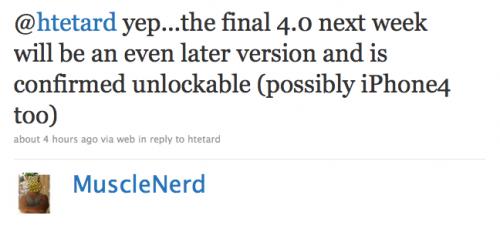 MuscleNerd twitteren megerősítette, hogy jövő héten kijön az iOS 4 verzió törése és függetlenítése, amely valószínűleg az új iPhone 4-es telefonon is működni fog.
