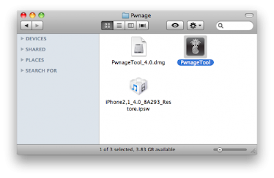 Csinálj a gépeden egy Pwnage nevű könyvtárat és rakd bele a PwnageTool 4.01-es verzióját valamint a hivatalos 4.0-ás firmwaret.