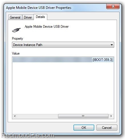 Apple Mobile Device USB Driver jobb klikk tulajdonságok utána részletek és ott sehol nem találom ezt az iBOOT-os sort illetve számokat meg kb semmit erről