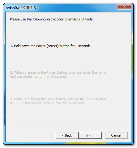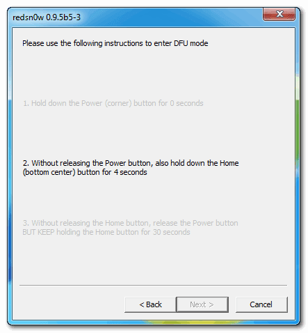 Ez nagyon fontos lépés, DFU módba kell tenni a telefont. Redsn0w segít ebben, figyeld az utasításokat.