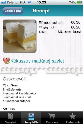 @jimny: A hiba a te készülékedben lesz, ugyanis nekem 3G-n is elfogadható sebességgel fut: kategóriaválasztás max 3mp, receptválasztás max 2mp alatt bejön, a scrollozás is gördülékeny, ott nincs akadás.