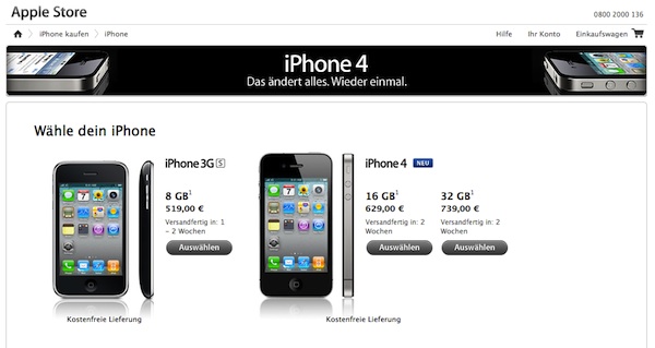 Tegnap járt le a német T-Mobile monopóliuma, így a Vodafone és az O2 is elkezdte árulni az iPhone-t. Elég sok előfizetési csomagban kapható, akár 1 euróért is. Megrendelhető az Apple német nyelvű honlapján is: kártyafüggetlenül a 3GS 519 euróba, míg a 4-es 629 és 739 euróba kerül.
