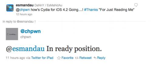 A november 1-én megjelent 4.2-es rendszer GM verziójával nem működött együtt a Cydia. Ezért többen attól tartottak, hogy a jailbreaket késlelteti a Cydia kompatibilissá tétele. Chpwn azonban egy kérdésre azt válaszolta, hogy a Cydia már készen áll a 4.2-es verzióra. Hurrá!