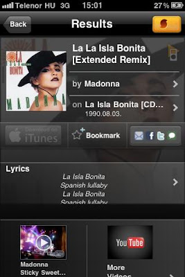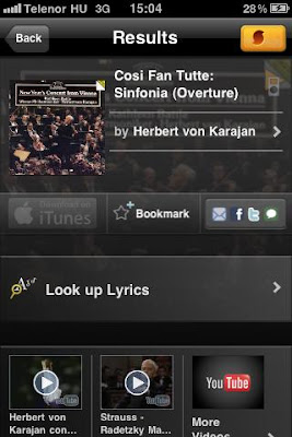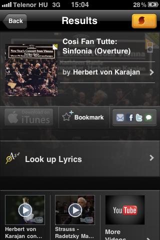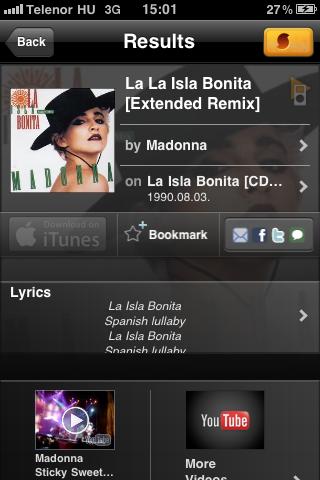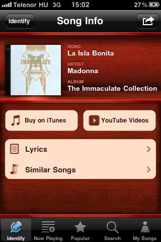 Shazamban van koncertinfó, YouTube videónézés, twitterre és Facebookra való postolás, dalszöveg megtekintése, küldhetünk képeslapot, elolvashatjuk az adott lemez kritikáját. Szóval elég sokrétű lehetőségekkel rendelkezik. Az app ára 4.99 euró, de van egy ingyenes változat is havi 5 kereséssel.