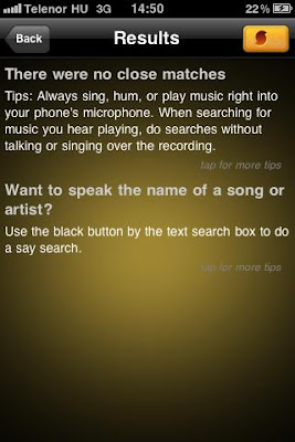 SoundHoundnak szem azért jár +1 pont, mert ha nincs neted, elmenti a hangmintát és el tudod küldeni később elemzésre!