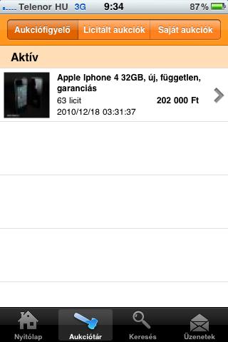 Az adott aukcióra figyelést állíthatunk be. Ebben az esetben push üzenetet kapunk üzenet érkezéséről, licitálásról és az aukció befejezéséről is.