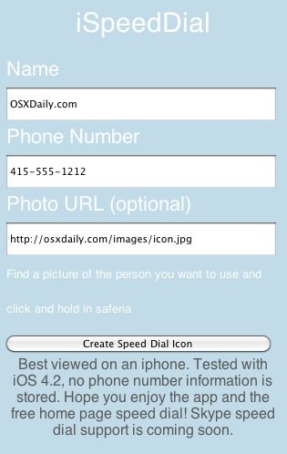 Telefonodon a böngészőn keresztül menj a http://www.iphone-speeddial.com/ oldalra, töltsd ki az adatokat és nyomj rá a “Create Link” gombra. Ha feljön a hívás funkció, nyomj Cancelt, és mentsd el az oldalt a Főképernyőre (mint más Safaris könyvjelző esetén). Ezután nincs más teendőd, mint telefonálni. Sajnos nem egy, hanem két kattintás után tárcsáz és a hívás befejezése után is feljön a képernyő, de ennyit azt hiszem el lehet neki nézni 🙂