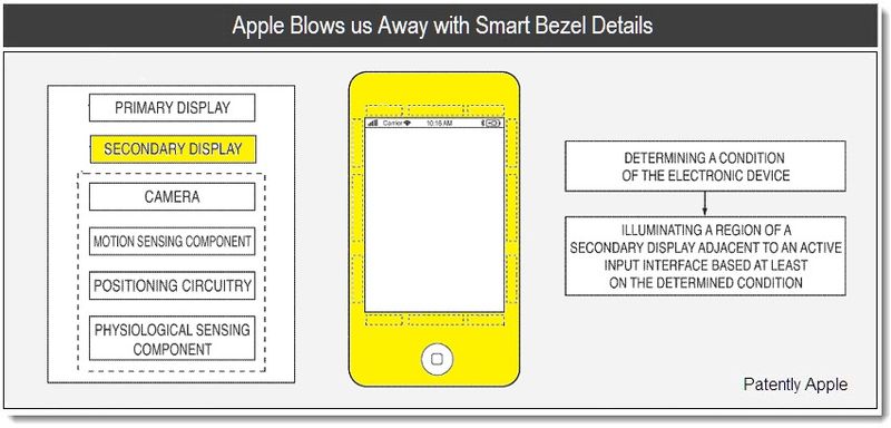 Az Apple újabb szabadalmat nyújtott be, amelyben a telefon eddig funkció nélküli előlapját használná ki. Eszerint az előlapon olyan érintésérzékeny, külön megvilágítású ikonok kapnának helyet, amelyek információt nyújtanának a felhasználónak. Például ha kap egy SMS-t vagy nem fogadott hívása lenne, az ikon kivilágosodna, és egy gombnyomásra az adott alkalmazásba kerülne az ember, tehát shortcut-ként működne.