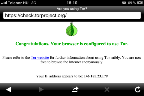Aki más böngészővel próbálná ki, cydiából letölthető (vagy a Tor oldaláról), ami SBsettingsben ki-be kapcsolható, így külön böngészőre nincs szükség, használható minden netet igénylő programmal.