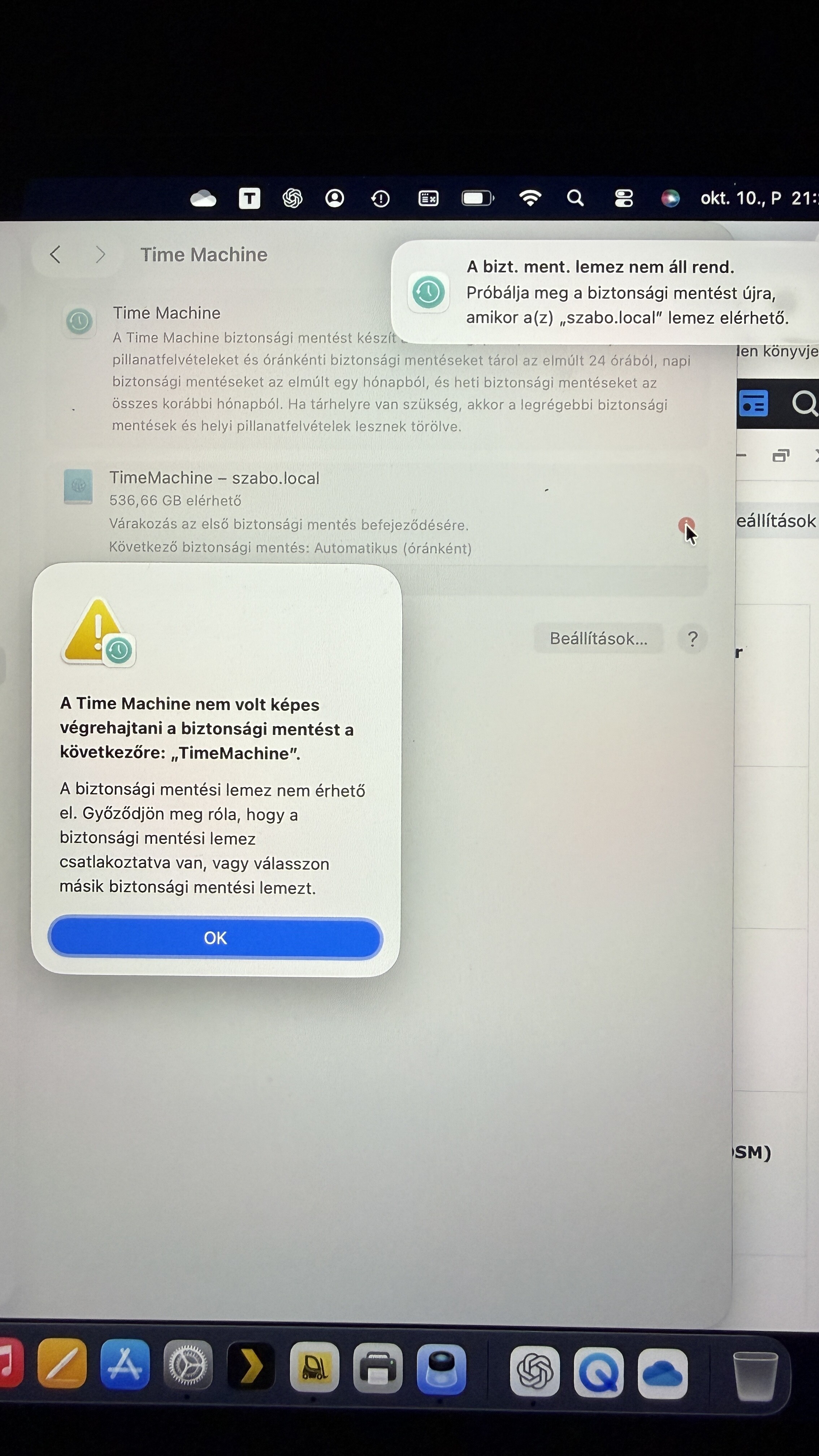 Készítek egy dokumentációt róla, hogy mindenkinek meg legyen, nem egyedi hiba, a karakter fordítással van gondja a timemachine-nak!