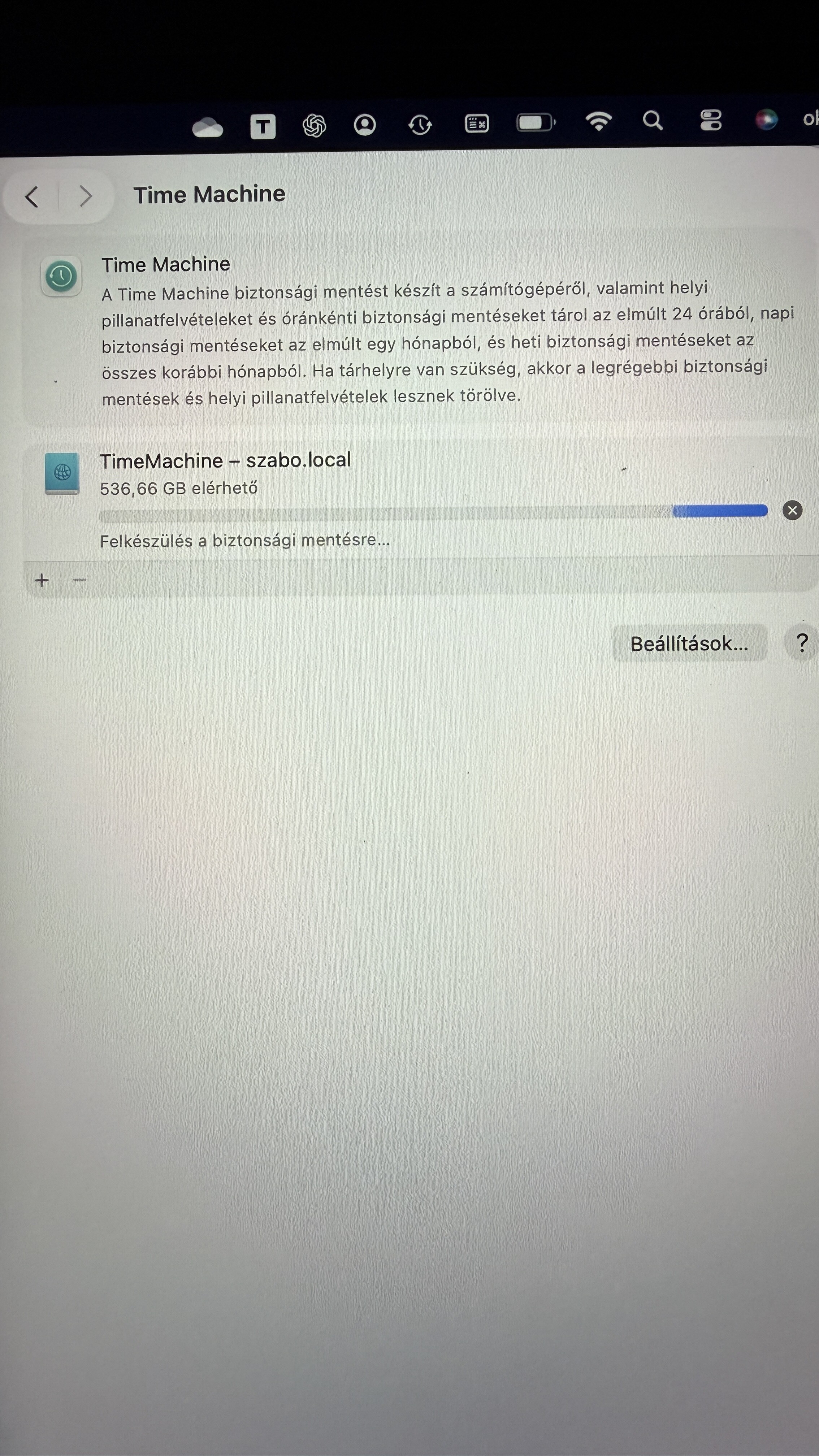 azért nem értem ezt a hibát, mert nekem QNAP NAS-sal nincs ilyen gondom – viszont azt is kiemelném, hogy a mentést gépváltás miatt frissen kezdtem az új gépen, és azon is már eleve a macOS Tahoe bétáján, tehát nem a korábbi mentésemet folytattam vele. de mindjárt bekapcsolom a régi gépemet, és megnézem, hajlandó-e menteni.