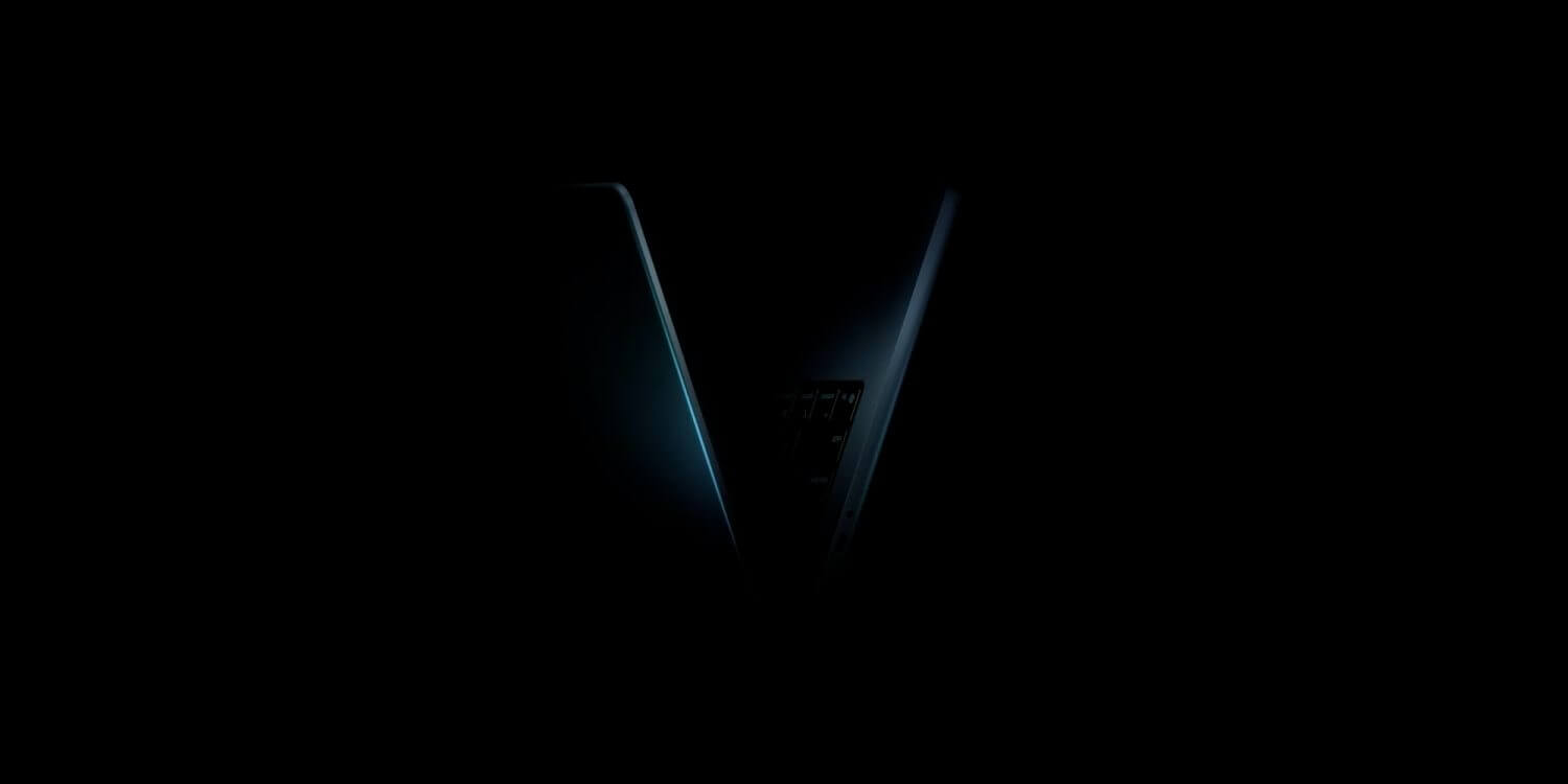 • A MacBook Pro élére van állítva és így egy V betűt formáz. Ez egy újabb utalás lehet az M5 chipre (a római 5-ös után).