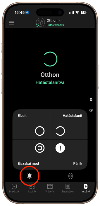 Ezt követően véletlenül se felejtsük el az Ajax vezérlőpaneljén alul rányomni a csengő ikonra, különben nem fog csengetésre jelezni: