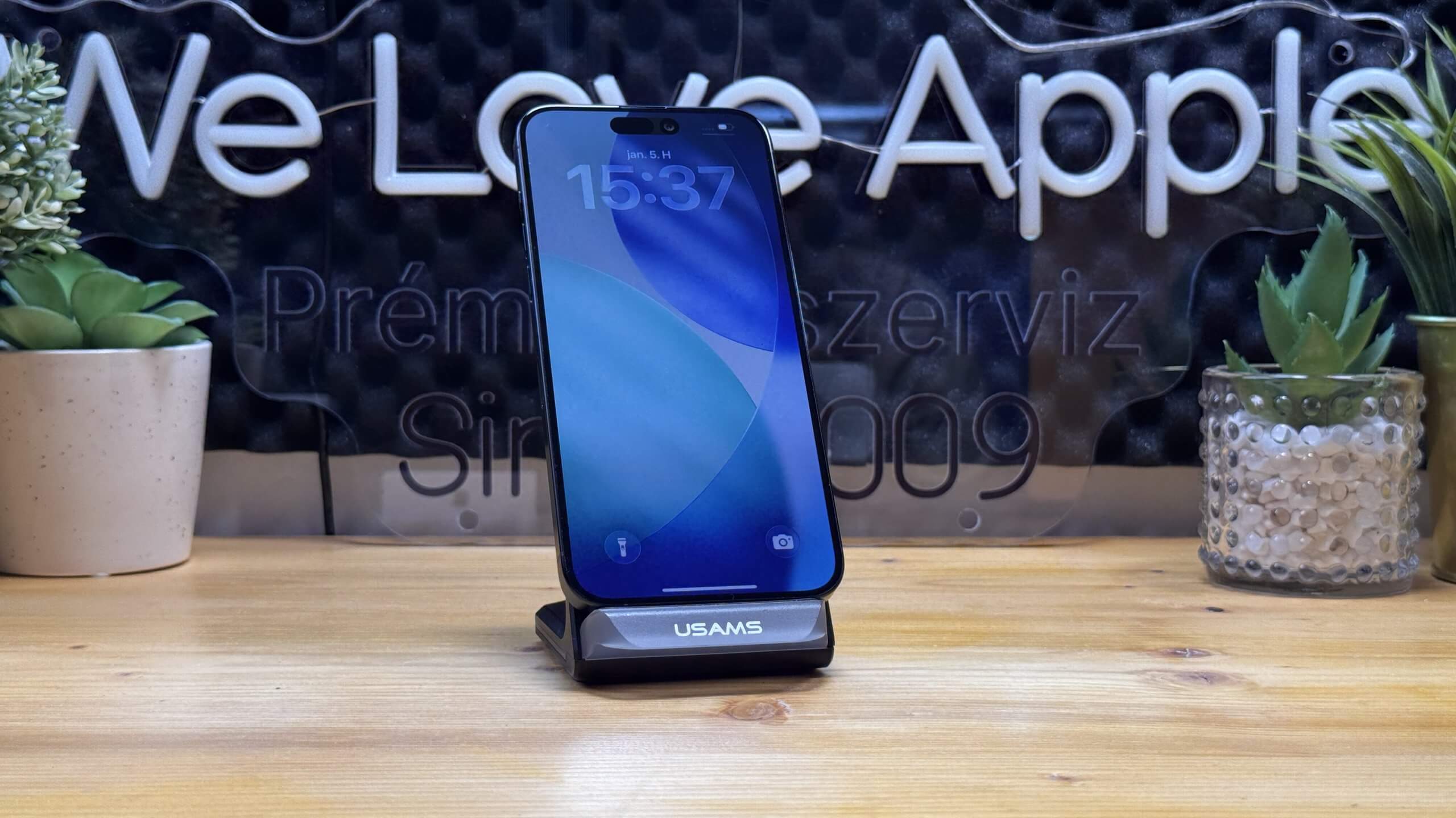 Támogatott a vezetékes töltés USB-C csatlakozón keresztül, valamint a MagSafe és Qi vezeték nélküli töltés.